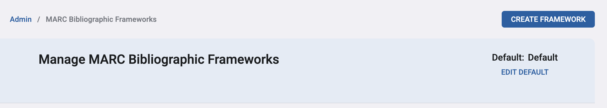 A new “Set Default Framework” option is now available on the Manage MARC Frameworks page.